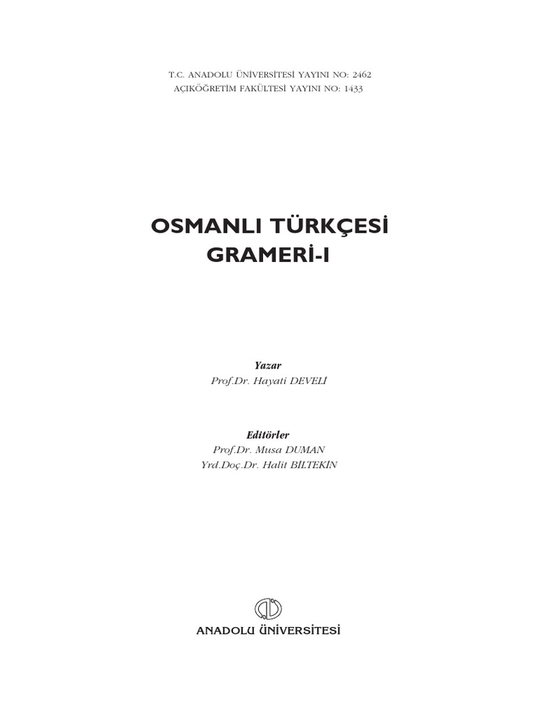 osmanli turkcesi grameri 1 i aof anadolu universitesi acikogretim fakultesi nadir kitap
